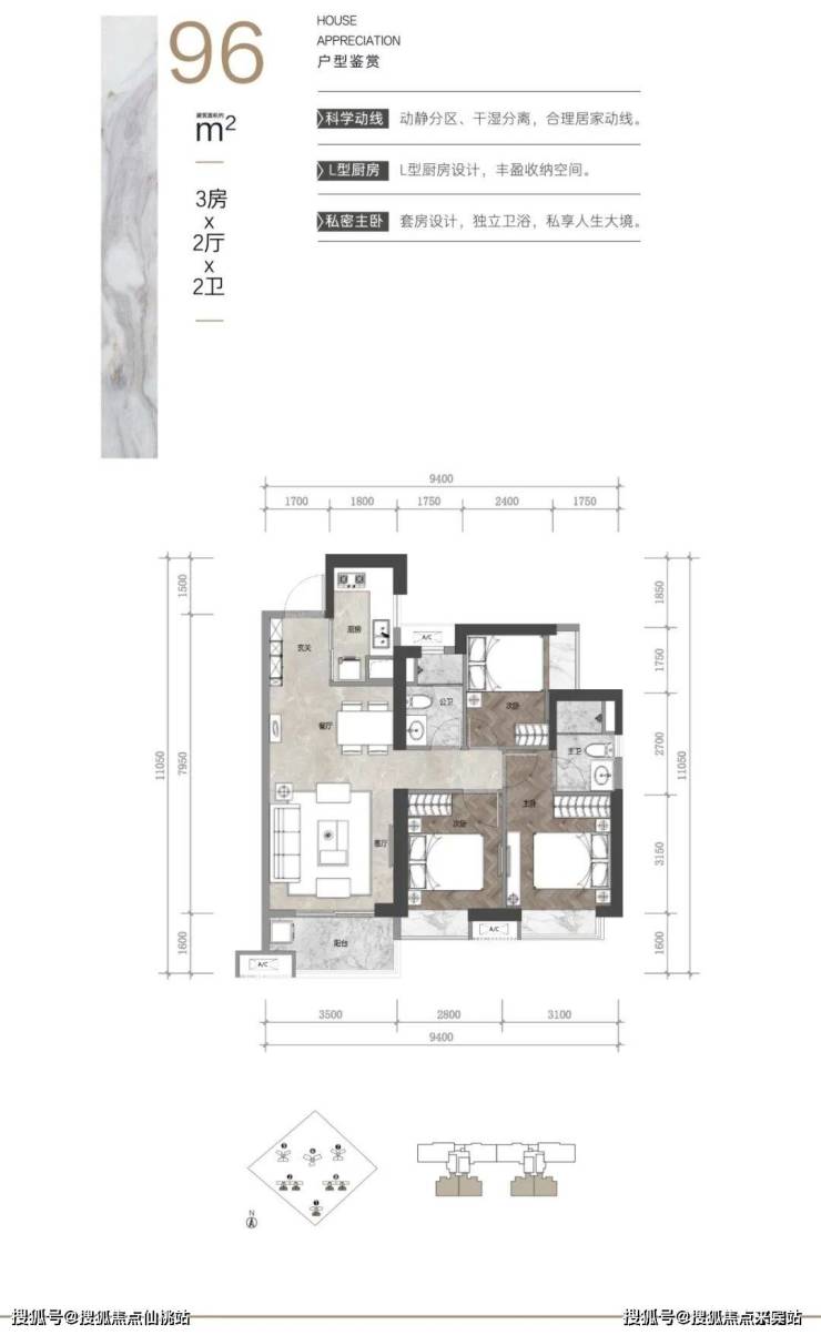 户型:建面约80-96㎡创享空间、建面约96-198㎡的天幕高层