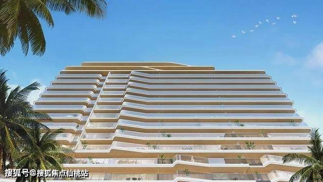 建筑外立面简约大气,横向铝板线条与飞片型材造型交织,端头弧形元素与变异阳台设计相得益彰,游艇造型塔冠点睛,铝板、石材与质感涂料搭配,抵御气候侵袭同时,塑就灵动且具品质的建筑外观,与风与浪共舞,和自然同频。