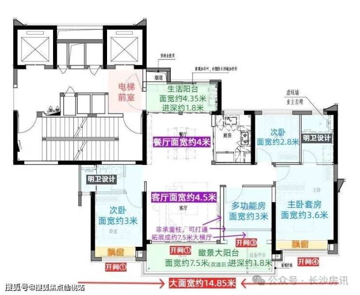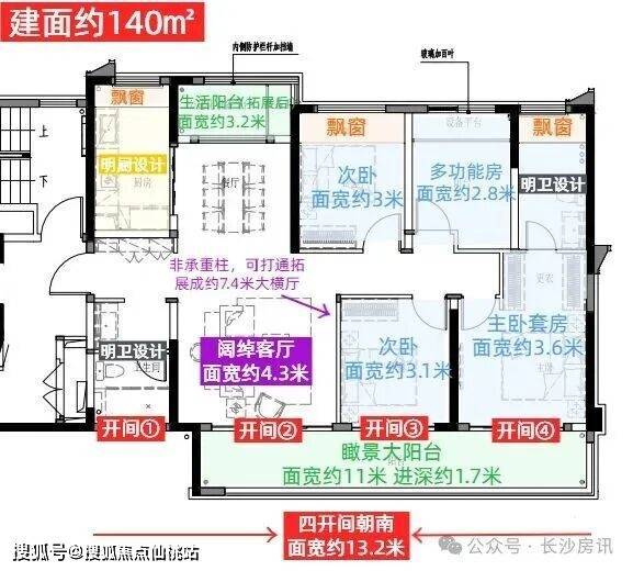 ★143㎡ 珺·颂 四房两厅两卫(A2栋)·独梯入户,私属归家体验·南北双阳台通透格局,品味明亮肆意人生,自在清风常伴·LDKB 洄游设计,精研究间尺度,舒放自在生活·主卧套房设计,尊贵感与私密感尽显·四面宽朝南,约 13.5㎡超大景观阳台,享全生态园景艺术视野