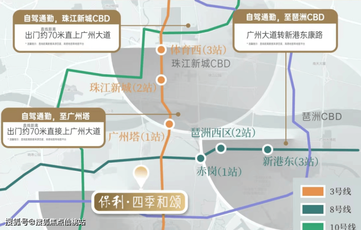 项目占据城市最核心的位置,左拥海珠成熟老城,右抱琶洲数字经济区,项目途经广州大道南,到珠江新城只需5公里,到琶洲只需11公里,顶尖的资源及产业都沿着这条中轴铺开。