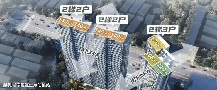 楼盘不大,一共规划三栋楼,其中1号楼为政府统筹用房不对外销售,8层高,可售的是2/3号楼,28-29层高,使用率在94%-105%,2号楼为两梯三户,分别有三种户型,108/110方做三房,120可做四房。3栋(3A/3B)则是140方可做四房户型,板楼设计,两梯两户,是楼盘的主打户型,货量最多。