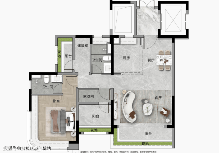 “宽幕视野” 南北通透双视野,主卧270°转角飘窗