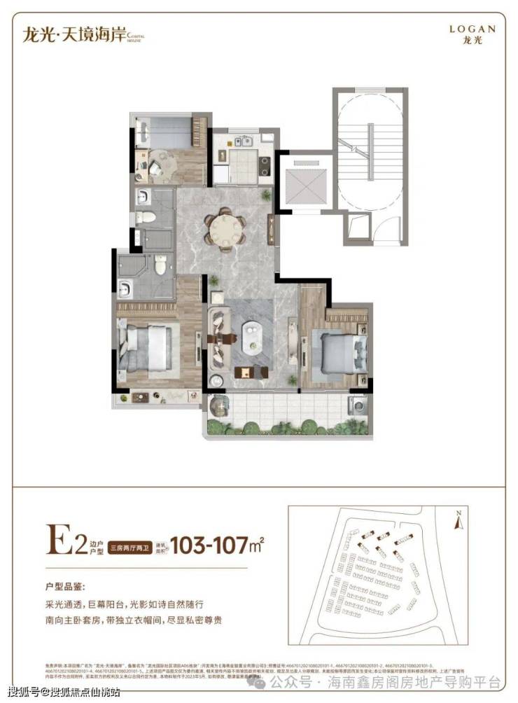 龙光集团,首进黎安国际教育创新试验区,匠筑约389亩山海旅居城,拥北纬18°全维资源和“双湾三海”生态格局。大三亚少有大产权亲海住宅,退海之下的旅居“臻”品。一期规划11栋高层住宅和27栋多层住宅,打造2梯2户海景高层、全系多层住宅产品,丰茂山海肌理,焕新海岛旅居体验。