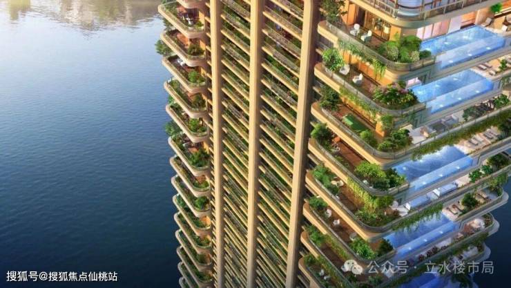 空中生态绿洲:阳台均预留下嵌式30-40cm的深覆土,将土地、花园、园林、泳池搬至家中阳台,实现“一户一世界,一层一森林”的立体生态住宅,在自家阳台即实现生态种植自由。极致的景观利用,打造16*5*1.5m无边际空中泳池,户户都有私家庭院,每一个房间都可直通独立阳台,让⾃然与天空平行。