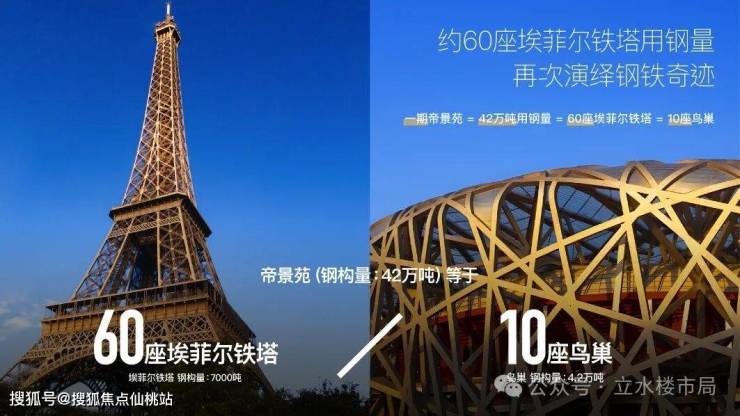 首个在住宅上面使用商业建筑钢结构技术的5栋高达251米62层的超⾼层。以领衔世界水准的钢构造工程,配以军⼯领域或⼤型基建双阻尼器抗震技术,超越普通桩基4倍的桩基深度高达70米,总用钢量高达46万吨,为世界单建筑用钢量之最,演绎钢铁华章。