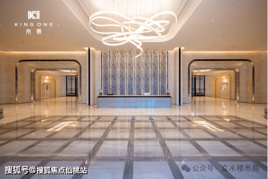 二重入境:国际著名设计大师梁景华先生执笔约7.2米挑高首层大堂,精雕细磨弧形石材铺陈墙面,如同置身大师艺术馆;
