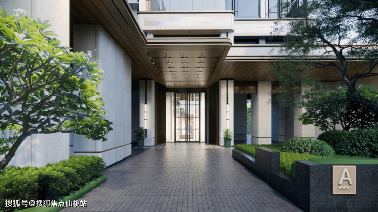 华丽的装饰与大气的落客空间尺度,约50M长的昭示迎宾界面,营造酒店级奢侈领域前场。统一沿市政界面,形成风格统一且连续贯通的对外形象昭示界面。让建筑向外生长,景观向内渗透。广府奢享酒店大门,超凡大气,向两边延展,给人以震撼之感,打造精奢尊享酒店式归家体验+沉浸式酒店式落客体验。