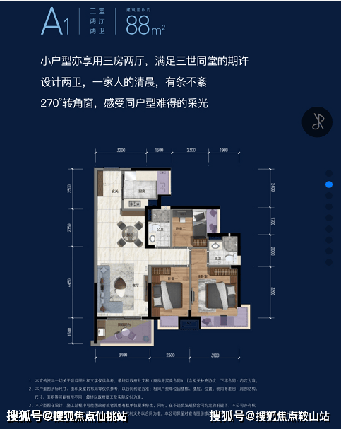 项目户型建筑面积从约88㎡至239.9㎡。囊括三室、四室、五室,大户型尺寸宽绰,空间可进可退,小户型小而精致,居家功能、景观阳台齐备,满足一家三代的居住需求