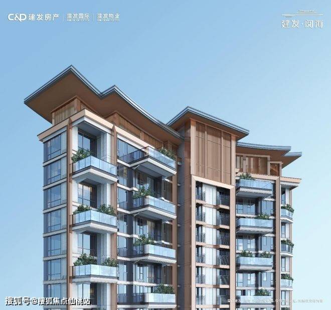 建发·阅海采用建发房产诗意东方风格打造,建筑塔冠上,中式挑檐的元素以一高一低的错落形式,既诠释“东方屋脊”的端重形象,又不失现代的轻盈灵动。香槟金金属线条、金属漆、深浅色质感涂料和多彩漆等多重复杂材料的运用,则写照东方美学的“流光溢彩”与湾海的大气多姿,焕新岛城人居建筑审美的至善追求。