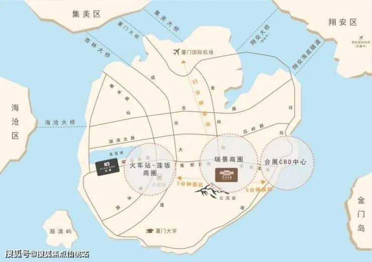 1分钟到主干道莲前西路,西接文兴隧道,南接云顶隧道,5分钟可达环岛路(厦门最美沿海干道)5分钟车程可达厦门CBD-国家两岸金融中心及会展中心15分钟抵达厦门高崎机场,轮渡等