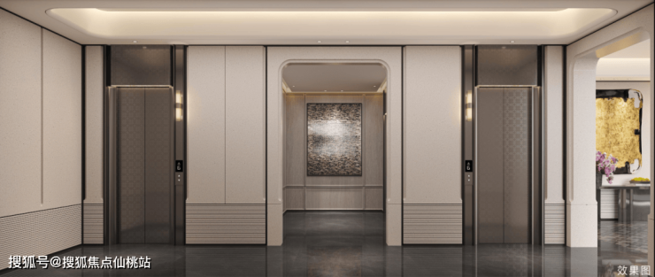 项目以“酒店式奢宅”为定位,主入口融入北京宝格丽酒店与曼谷Velaa商业广场设计精髓,以气宇恢宏之姿与酒店式大堂彰显尊贵。大尺度飘檐与院落围合设计,既塑造城市地标形象,又营造私密静谧的居住氛围。