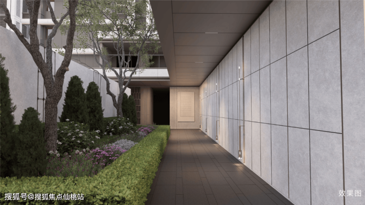 首创“城市屋檐”概念,结合社区阳台与屋顶花园,打造立体绿化体系;水院景观引入灵动水景,结合“三纵三横”艺术花园,形成动静相宜的生态空间。