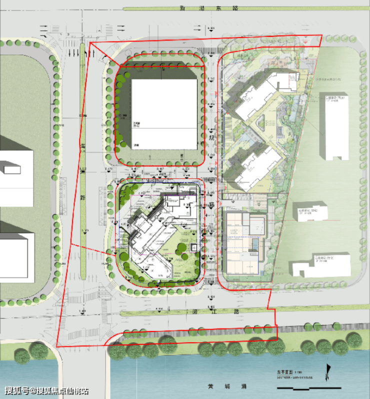 项目占地5706㎡,容积率5.26,限高138m。呼应琶洲西区布局,结合周边景观,优化楼栋角度,在保持板式结构的同时,最大化利用南向景观面,享有良好景观视野,并确保良好的南北通风采光。功能分区明确,公建配套设于西侧面向规划道路,东侧围合形成内向型业主园林。