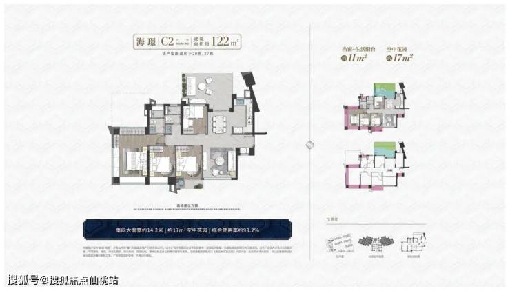 4房2厅2卫1空中花园综合使用率约91-93%
