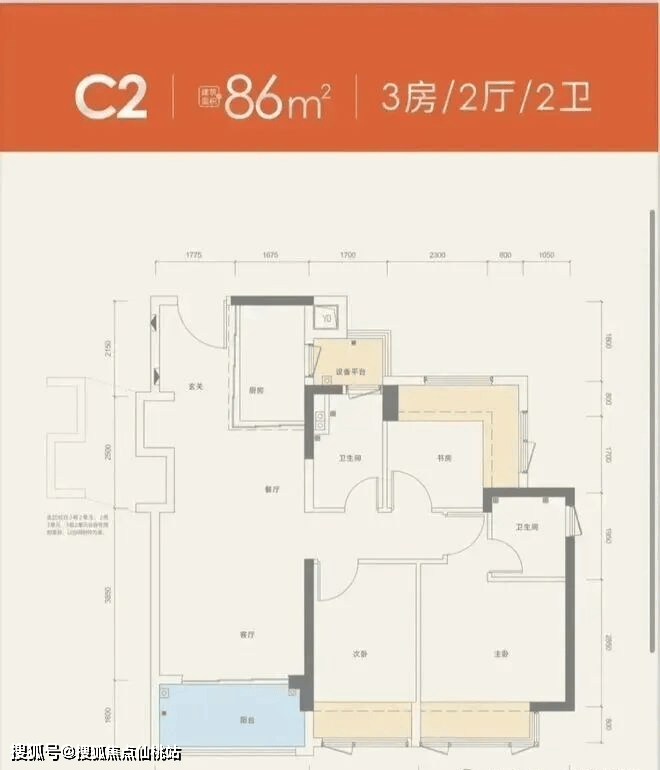 【建筑面积86㎡3房2卫】