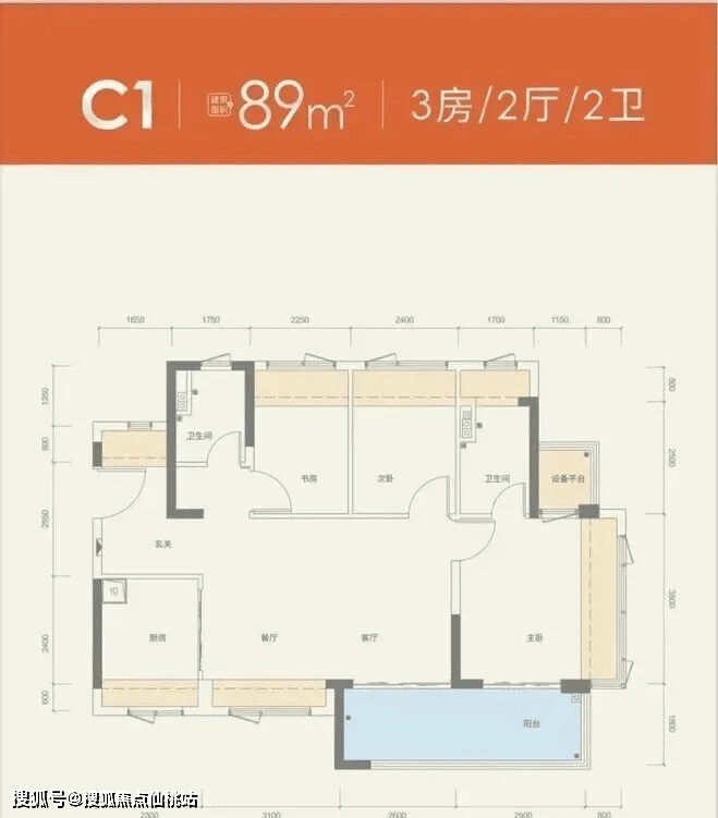 【建筑面积89㎡3房2卫】