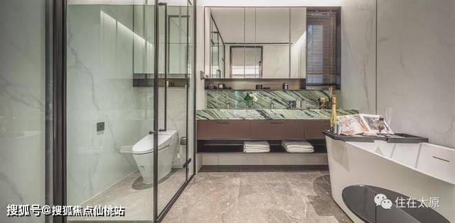 在功能方面,整个卫生间参照了五星级豪华酒店的布局方式,将智能马桶、独立浴缸、淋浴区,双台盆功能进行精细分区,凸显尊贵品质感的同时,也让整个卫生间的使用动线更加合理更加人性。