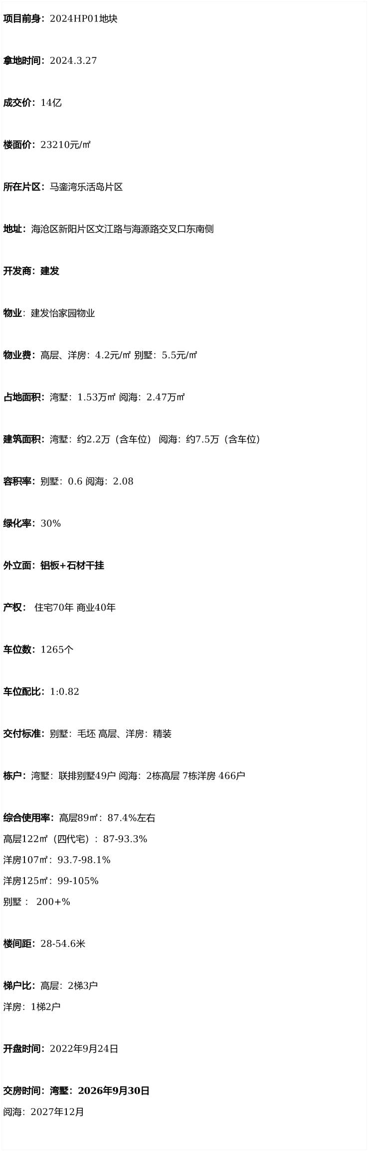 地块分为2个项目。A1地块建发湾墅,综合使用率超200%,终极改善置业,是厦门近十年唯一一个纯别墅住区。A2地块建发阅海项目四代宅(120㎡以上户型)入户花园 ,空中花园,整体综合使用率为87%-108%。