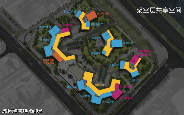 架空层主题泛会所充分结合时代需求和圈层习惯,规划共享社交、儿童嬉戏、活力运动三大主题,将长者颐乐、青年悦享、孩童乐趣的多元场景融于生活,让日常充满活力、乐趣、人情味。