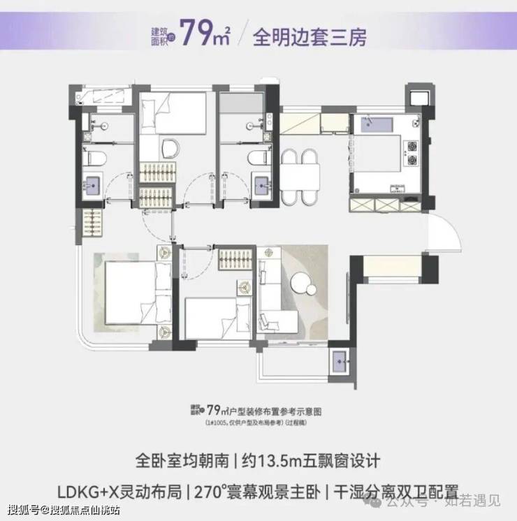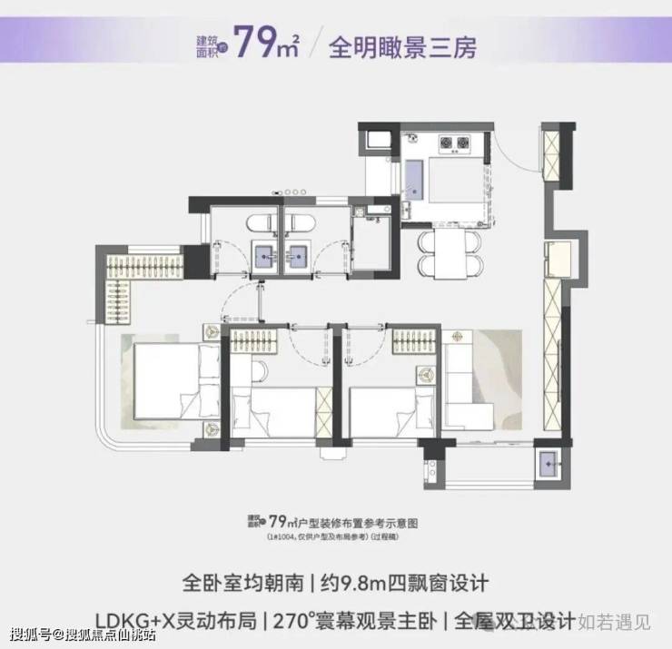 约79平户型竟做到了3房2卫,解决了市面上同类产品功能不足的痛点。精装上更是搭载华为鸿蒙智家最新系统、方太净洗中心等,实现了“优总价”与“高品质”的完美统一。