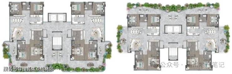 洋房常见的三面宽格局,一梯两户设计比较省公摊。虽没贯通梯设计,没有独立电梯厅,变成了室内玄关。