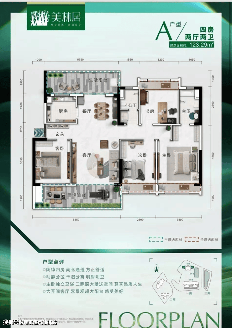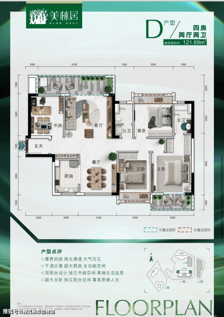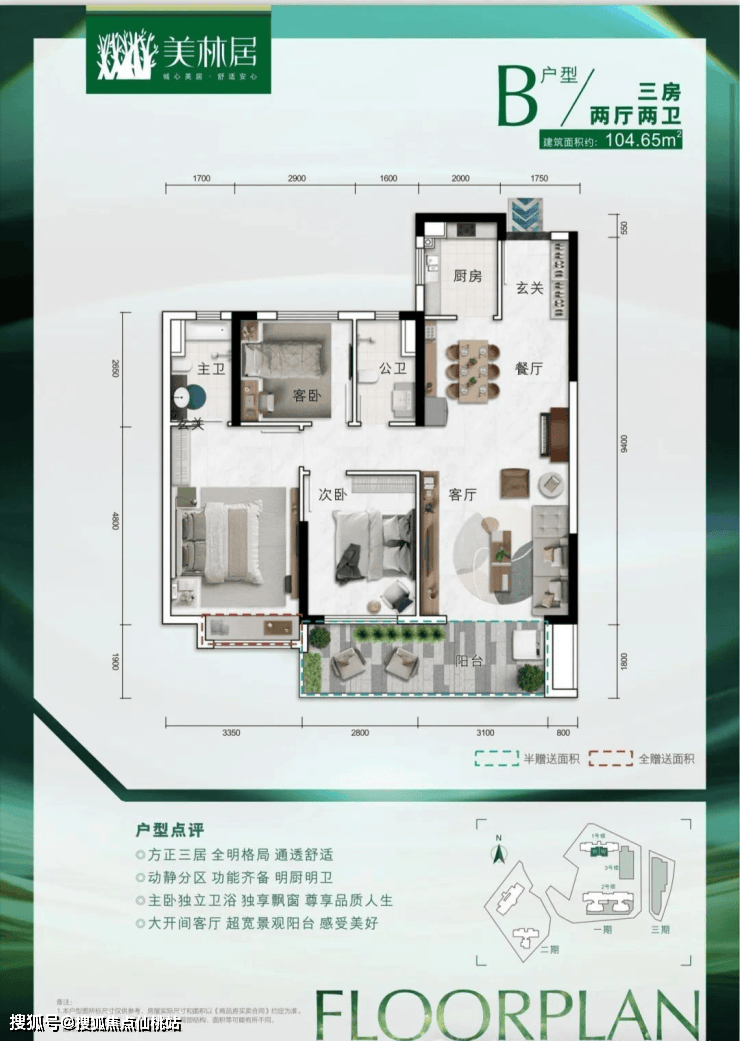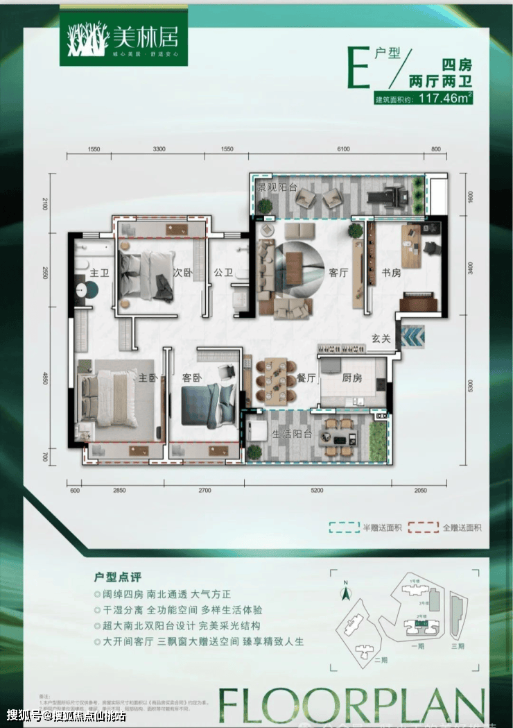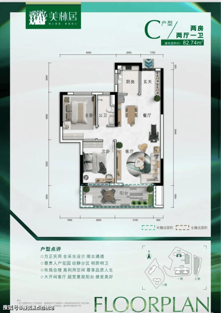 楼栋设计:户型方正,南北通透,全明设计,动静分区