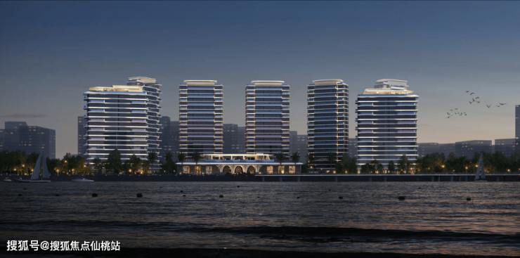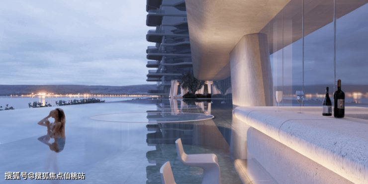 采用轻盈独特的滨水风格和海洋文化流体美学进行立面设计。以天空游轮为灵感,流畅的弧线设计立面采用幕墙设计+曲面玻璃,体现自由浪漫的滨海气息。