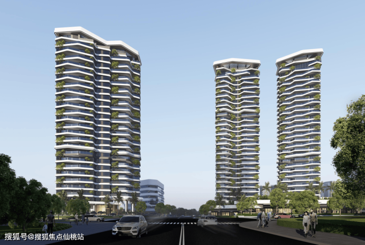 你看,项目效果图就很明显,楼上楼下花园错位挑出,增加了视觉层次感,呈现出强烈的垂直森林风格,每层住户都能在花园中无遮挡沐浴阳光。