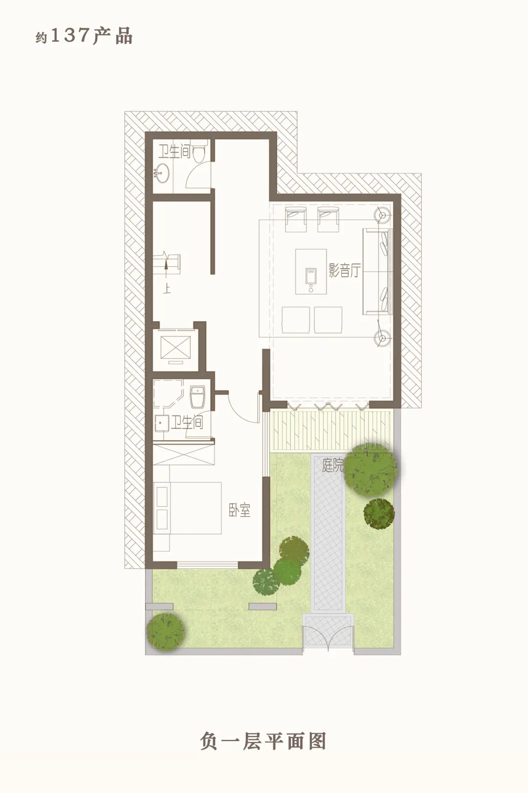 负一层,从茶旅生活到影音娱乐一应俱全;二层双室朝南套房,配备双重露台,主卧自带独立明卫,缀以淡雅的色系,空间层次明确,高雅不失质朴;次卧满载暖意,既盛得下女儿的天真浪漫,也装得下儿子的游乐空间。