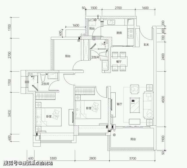 独立入户玄关、U型厨房等设计,也让这款户型的空间改善提升明显。