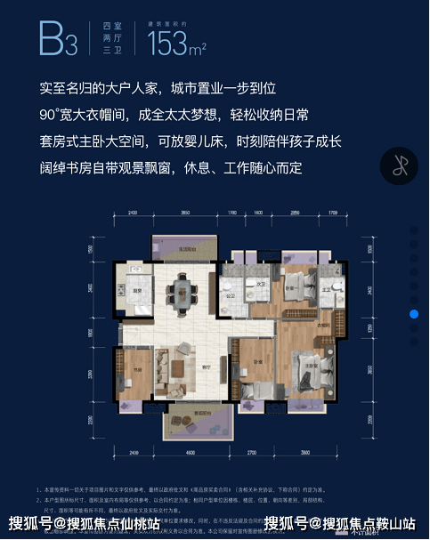 项目户型建筑面积从约88㎡至239.9㎡。囊括三室、四室、五室,大户型尺寸宽绰,空间可进可退,小户型小而精致,居家功能、景观阳台齐备,满足一家三代的居住需求