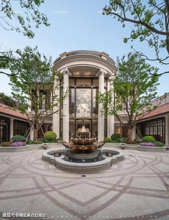 在规划上采用“一轴七院” 的布局模式,通过一条景观中轴线串联起七个不同主题的院落空间。重塑传奇府邸的经典空间序列,使居住者在移步换景中感受时光与海岛的浪漫交融。