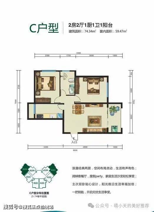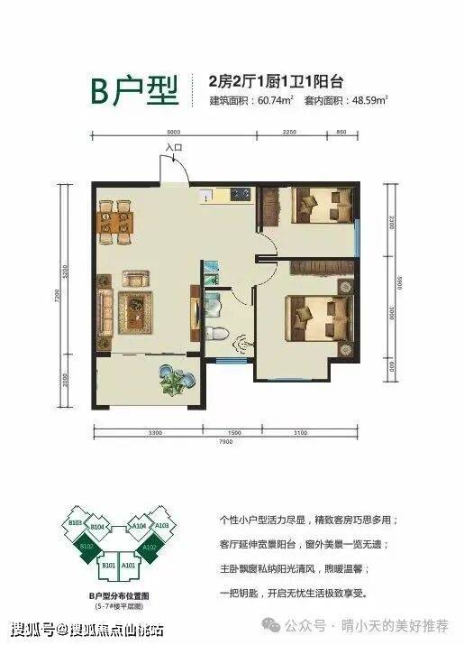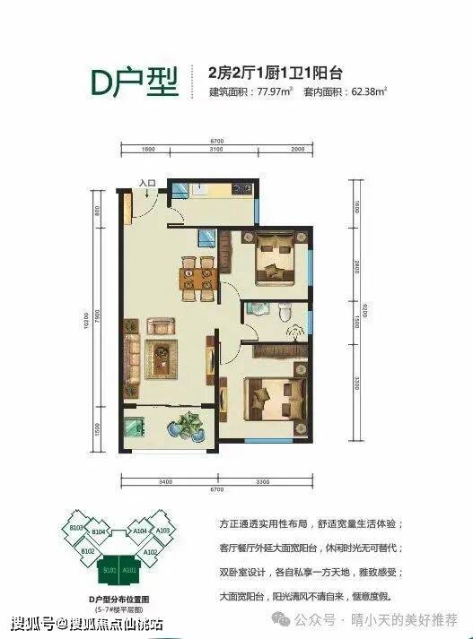 ③诗意花园小户型,性价比高,户型全明设计,居住舒适。