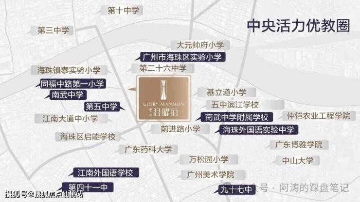 公办省一级海珠区实验小学为邻,对口五中、六中、南武等老牌名校(2024年教育招生公示),周边30余所优质学府林立,划定“中央活力优教圈”,开启海珠菁英教育新时代。(具体招生政策以当年政府教育局公布为准。)