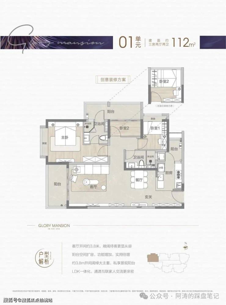 🏠01户型:约112㎡,【总价约:580W】