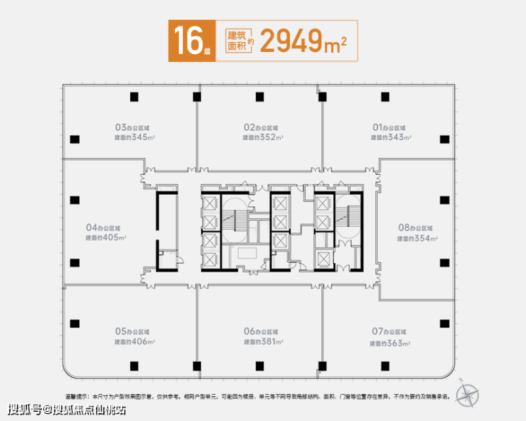 ◎在售产品:北塔中区(11-18层),约2777-2950㎡/层,总部办公 整层发售 仅8席