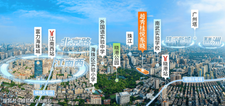 像近几年突飞猛进的广州五中,成绩已经跻身全市TOP10;海珠实验小学、万松园小学、南武实验学校等,也是海珠第一、第二梯队的学校。被强校环环包围的桂悦东晓,未来的教育起点,显然站在了高起跑线上。