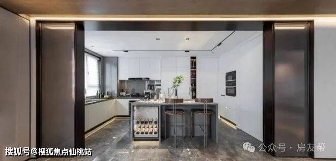 加之U型厨房让生活动线更流畅,餐厨中岛加持“一台多用”,摆台、收纳、品酒台,多种功能选择。餐厨一体相连,家庭聚会、美味生活随时开启。