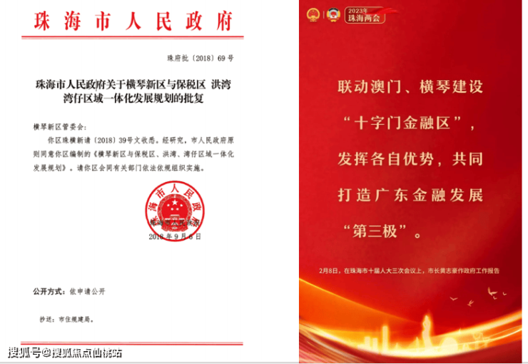 规划横琴一体化片区、双中心等位,南中心横琴金融岛定位商务中心,北中心十字门定位生活居住区,承载横琴居住人口,2022年规划十字门金融区,打造广东金融“第三极”,再次迎来发展机遇。