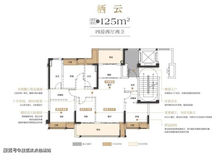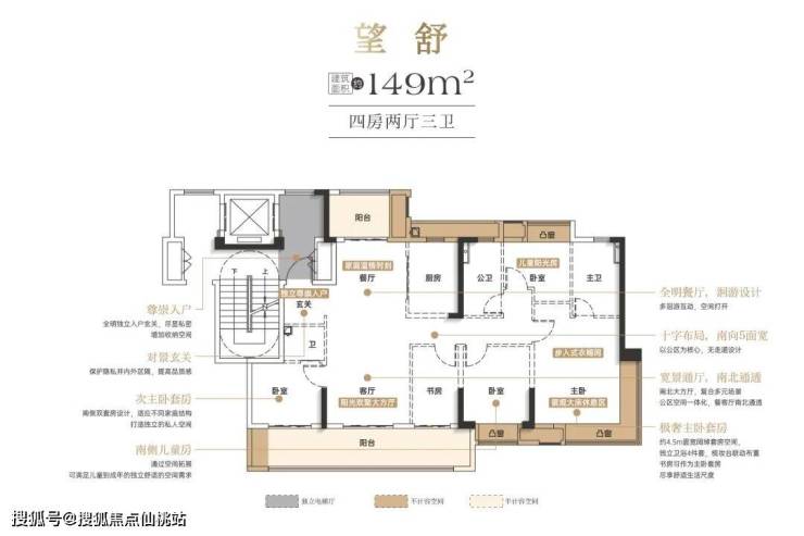 洋房产品主打125-149平方米的大平层,遵循大面宽、短进深的设计理念。例如125平方米户型可做到南向四开间,三房朝南一房朝北,餐客厅南北通透。149平方米户型则做出了市面上近170平方米的感受,做到4房+1房,3卫配置以及少承重墙的布局,使后期改造非常便利。