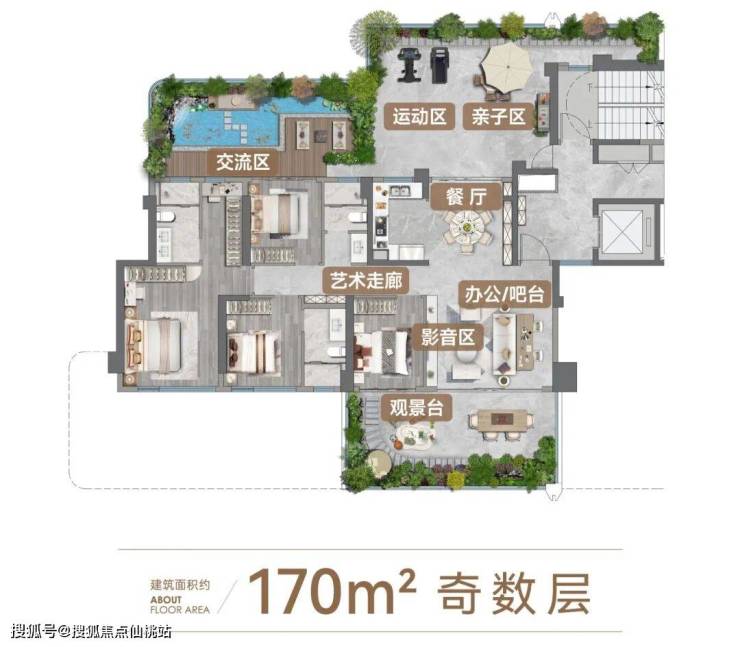 值得一提的是,家中长辈爱晒太阳、爱逛花园的习惯也替你考虑周到了,同时长辈房推窗正对空中花园的感觉,妙不可言。