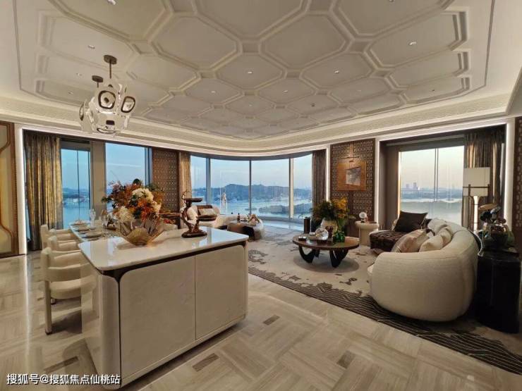保利鱼珠岛项目把大平层公寓产品做到了极致,室内3.55-3.9米的层高超越了绝大部分豪宅的设计,大面积观景玻璃幕墙的设计更是将景观最大化,让江景与城景更好的融入到室内,坐在客厅便可一览南向珠江美景。