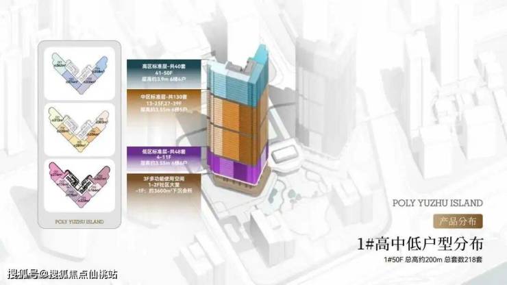 保利鱼珠岛公寓项目总高度为200米,是屹立在珠江边的南向超高层江景公寓,整栋公寓50层高分为高、中、低区,项目户型涵盖166-362㎡的三至四房产品,其中项目中、低区的标准层高为3.55米,高区的标准层高更是高达3.9米,这种层高在公寓产品里面是非常少见的!