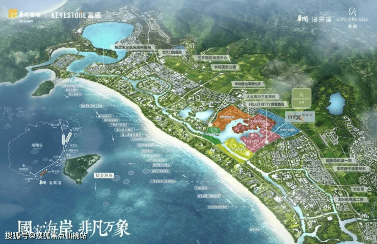 三亚海棠湾被定位为“国家海岸”,作为世界级的旅游度假区和度假天堂,规划"一点·一带·三区",约22公里黄金海岸线坐拥千亿级的娱乐、休闲、康养、购物、教育等资源配套。