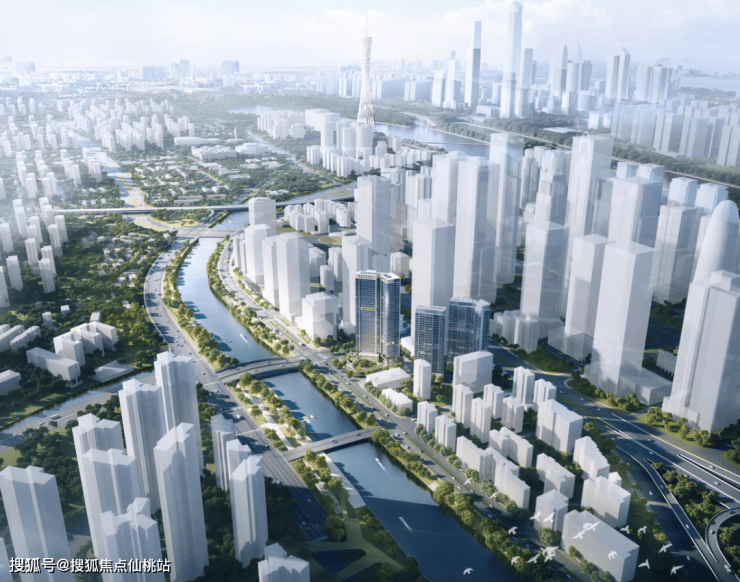 琶洲·樾|华樾位于广州 CBD 黄金三角之一的琶洲西区核心腹地,场地邻近地铁 8 / 18 号线磨碟沙站和新光、华南双快线,完善立体的路网高效连接城市中心。南侧毗邻黄埔涌滨江生态带,与琶洲南TOD隔江对望,北面为琶洲CBD企业总部摩天集群,天然拥有滨江一线与繁华城脉双重景观资源。