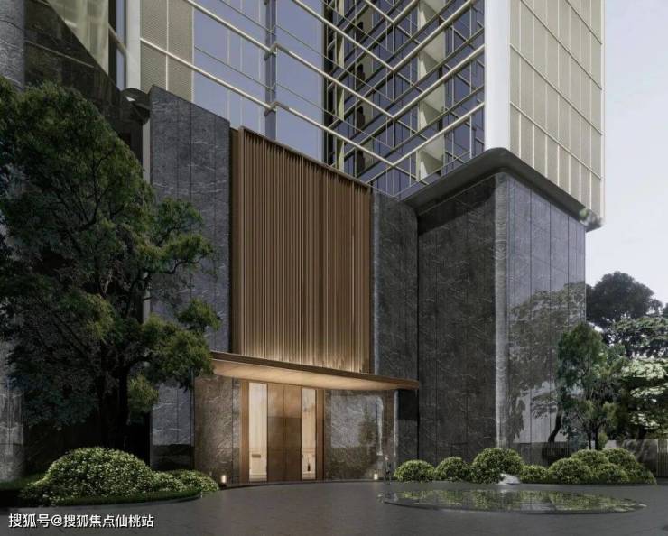 为打破城市与自然的界限,设计突破常规手法,通过围合的建筑体量划分出前庭后院的格局。前庭利用登高面设置酒店式落客区,连接城市繁华之口;后园通过层层退台空间,将山林、水体、植被等自然元素引入小区,并内置丰富的公建配套和休闲娱乐设施,满足多元的生活需求同时,让住客在城市中静享自然,于自然之中不离城郭,不出城郭而获山林之怡,身居闹市而享林泉之趣。