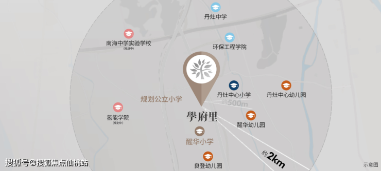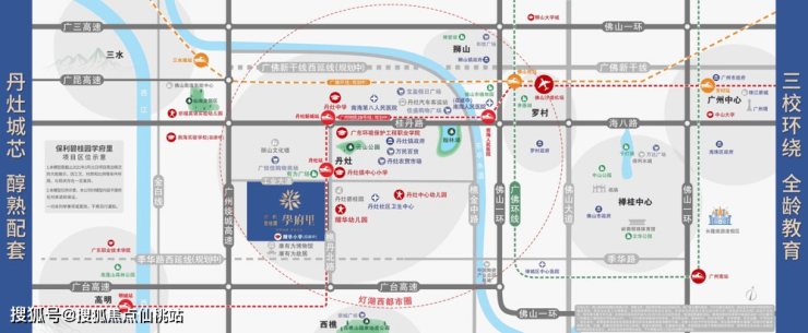 约800米范围内两大幼儿园:醒华幼儿园、丹灶中心幼儿园 约2km达丹灶中学、12年制公立学校-南海中学实验学校(今年9月开学)