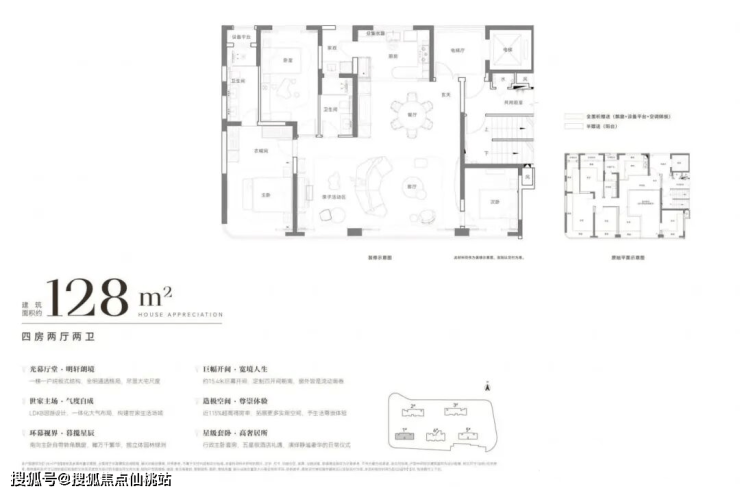 大户型奢配独立电梯厅,有的户型赠送面积可达约68㎡。