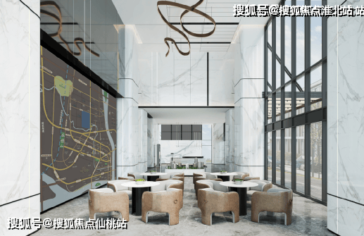 办公大堂的空间做得雄伟壮阔的同时保留细腻与精致,采用了统一色调的浅色石材作为背景墙壁,顶部长方形的线条将整个空间进行了延伸,深色的窗框与整个空间形成了色彩的对比,营造出一种国际、现代的空间感受。