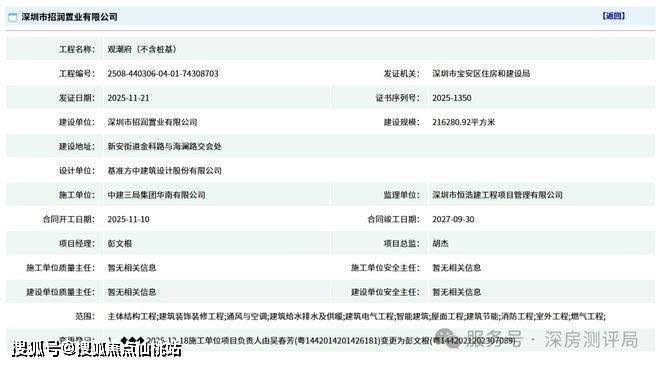 《华润招商观潮府》位于深圳市宝安区新安街道宝安中心区,观潮府也就是宝中A002-0108宗地,俗称南街坊地块,是在2025版《住宅项目规范》新国标发布后,于2025年8月15日深圳集中土拍供地,由华润+招商以86.4亿元竞得,为2025年深圳地王,溢价率34.8%,楼面价59586元/㎡,将会按照新国标住宅来打造,是深圳备受关注的豪宅项目。容积率低至3.41,总高只有23-26层。项目预计2026年3月底取证入市,计划首推的是3/5/6/7单元,有143-168-188-245-260-330-488㎡户型,户户带有专梯入户。预计2028年一季度带高品质精装交付,位置属于限购区,购房需一年深圳社保或者深户资格。